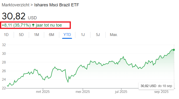 Vandaag staat de Braziliaanse ETF EWZ meer dan +35% hoger.