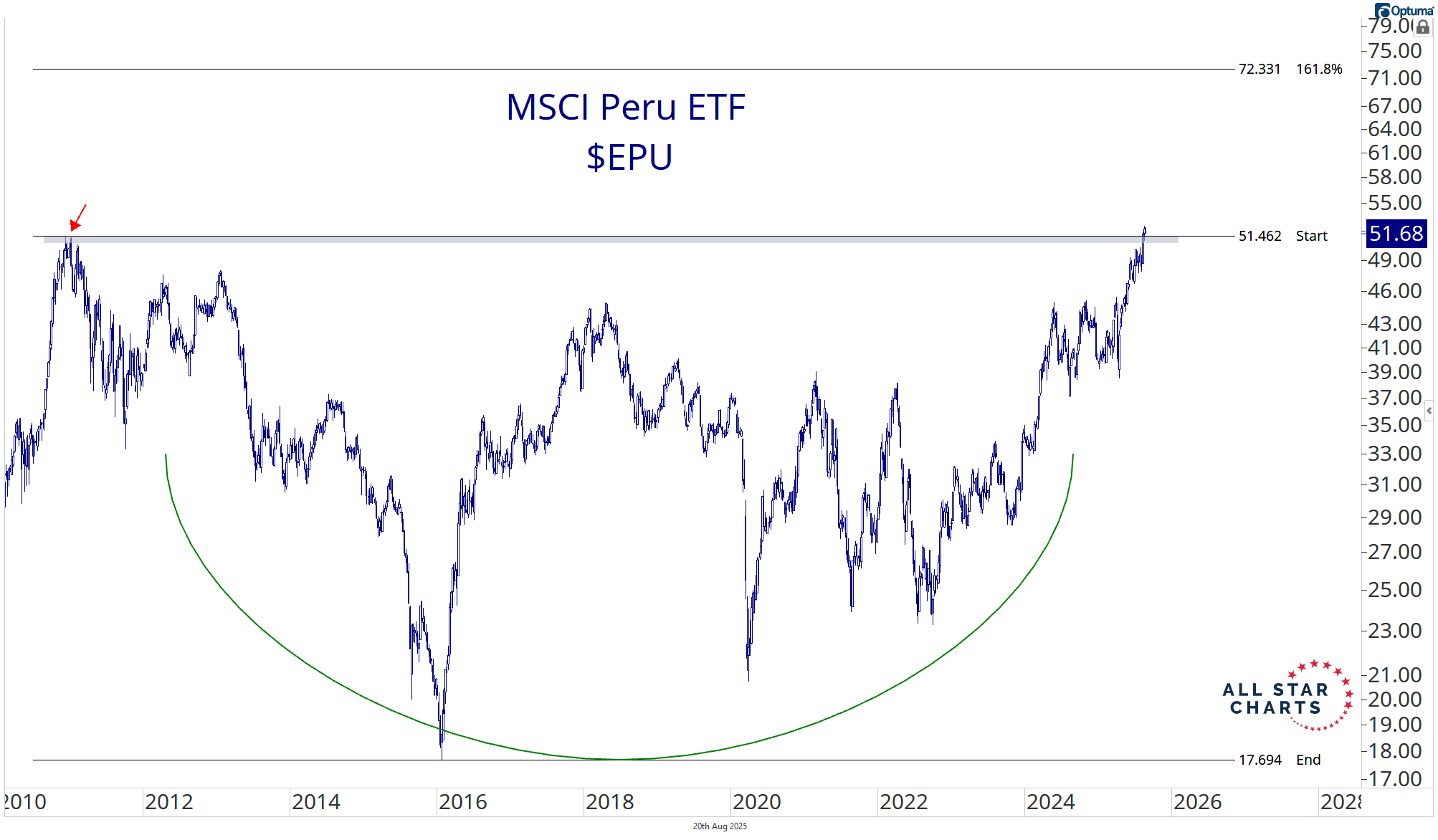 De MSCI Peru ETF (EPU) brak uit van een basis die maar liefst vijftien jaar oud was.